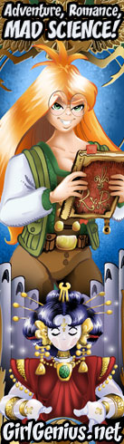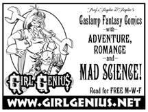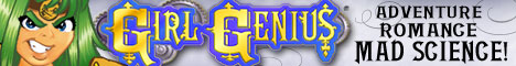 We're still building our readership, and every link helps. E-mail us and show us where you've linked to Girl Genius, and we'll send you a link so that you can download your very own! Samples: