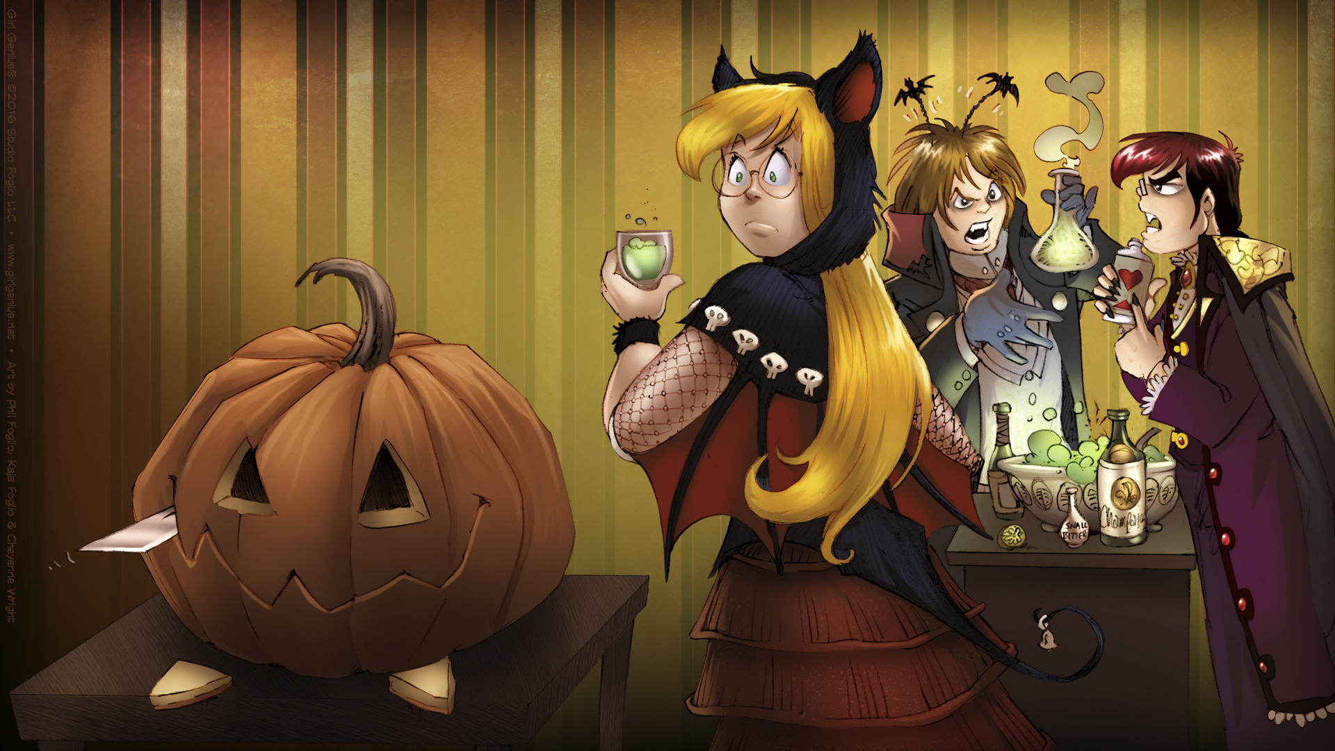 Girl Genius is written by Professors Phil & Kaja Foglio of TPU, with drawings by Prof. P. Foglio. Volume One was inked by Brian Snoddy and colored by Cheyenne Wright. Volumes Two and Three were colored by Mark McNabb. Volume Four was colored by Laurie E. Smith. From Volume Five onward, our regular color artist has been Cheyenne Wright. Our email and social media assistant is Chris Sorensen.