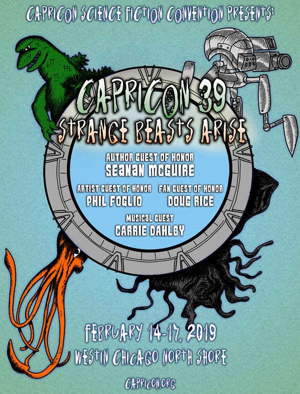 Capricon is this month! This year, Phil is Artist Guest of Honor. Also attending will be Seanan McGuire (Writer GoH), Doug Rice (Fan GoH), and Carrie Dahlby (Music GoH). I’ll be tagging along with Phil to watch the fun and do a reading from the upcoming Girl Genius novel. We’ll also be doing a new Girl Genius radio play, so if you’re up for an impromptu reading in front of a forgiving (we hope) audience, and want a part, talk to Phil at the con! The convention is held at the Westin Chicago North Shore hotel, and runs February 14-17. We hope you’ll come to see us! |