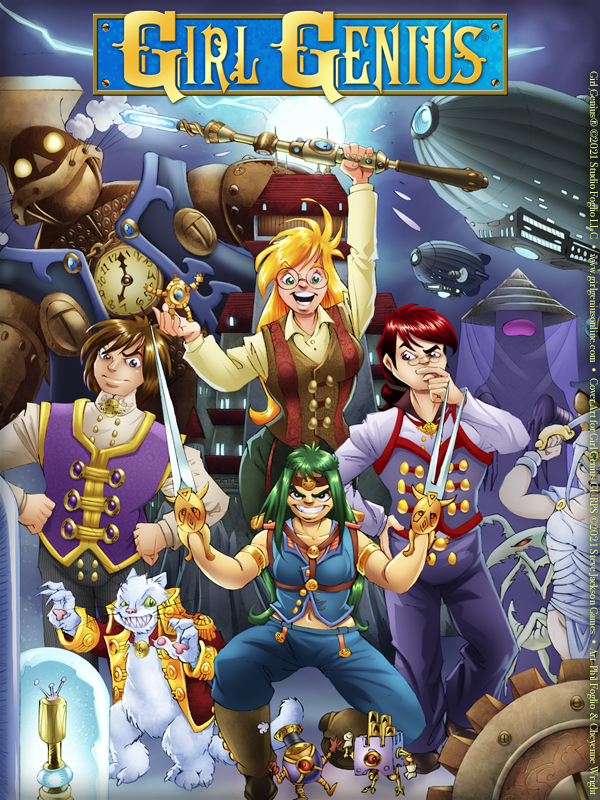 Social Media Spaces to watch: Our Girl Genius Patreon: https://www.patreon.com/girlgenius The Girl Genius Subreddit (we don't run this!): https://www.reddit.com/r/girlgenius/ The Girl Genius Discord (we don't run this one, either!): https://discordservers.com/server/305991325780541442 Girl Genius Twitter: @girlgenius || Kaja on Twitter: @kajafoglio || Phil on Twitter: @fogliophil We're on Instagram at: https://www.instagram.com/girlgeniusonline/ Find us on Facebook: https://www.facebook.com/girlgeniusadventures/ Pillowfort! (New and shiny!): https://www.pillowfort.social/girlgenius Tumblr: we can't currently log in to our old account. Give us time here. and DeviantArt (A bit abandoned at the moment): https://www.deviantart.com/girlgeniuscomic |