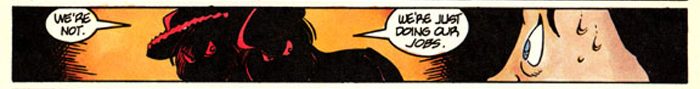 This is NOT a Girl Genius story, nor is it actually set in the Girl Genius universe. It is actually set in the Grim Jack universe--Grim Jack being a comic book from the 1980s that Phil did a few backup features for. This was one of them. The story takes place in a place called Cynosure, which is a dimensional crossroads. This is writer's shorthand for, "Anything that I think of can happen here, regardless of genre, causality, logic, or what I thought was going to happen when I started writing this thing, so watch it."