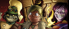 ![]() (First Appearance: Vol. 4 ) When the Jägermonsters signed on with the House of Wulfenbach, a small number of them were sent out into the world to search for the Heterodynes: forever, if need be. These Jägers do not work for Wulfenbach, and are considered "wild" Jägers. Oggie, Dimo & Maxim are some of these, and are the ones who actually found Agatha. They are very proud of themselves, and have been protecting her ever since. They are all amazing fighters, and unsettlingly smarter than they look; but then they'd have to be, wouldn't they? |